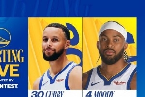 本场比赛,勇士首发:库里、穆迪、巴特勒、追梦、波斯特。