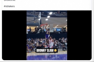 在本场比赛中,布朗尼上演抢断一条龙快攻单臂劈扣。