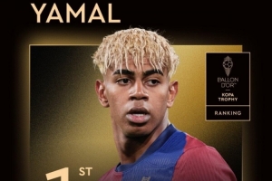 体育资讯9月23日讯 2025年金球奖颁奖典礼今日进行,18岁的亚马尔获得科帕奖(旨在表彰年度最佳U21球员),连续两年获得该奖项。