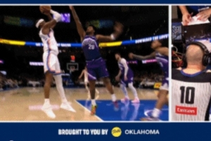 GIF-亚历山大撤步跳投倒地吹罚森萨博犯规,爵士挑战失败