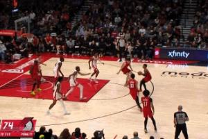 GIF-杨瀚森拿到前场板,单手一拨助攻乐福三分命中!
