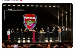 2025年金球奖颁奖典礼在北京时间今天凌晨进行,阿森纳女足获得2025年最佳女足俱乐部奖项。