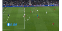 上半场利物浦的前场进攻,麦卡利斯特摆脱防守球员后带球杀入禁区,随后的右脚低射稍稍偏出远端立柱。
