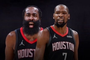 火箭媒体人Bradeaux晒出了一张哈登和杜兰特身穿火箭球衣的P图,说道:“我知道这非常不现实,但我就是忍不住去想。”