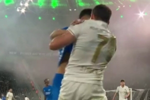 下半场门兴中场斯托格与勒沃库森中场帕拉西奥斯发生冲突,互相拉拽球衣,随后两队球员纷纷冲过来对峙,斯托格、帕拉西奥斯因此被出示黄牌。