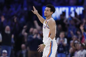 上半场,雷霆球员麦凯恩表现不错,次节上来连续得分,在7分钟的时间里,投篮5中3,三分球2中1,拿到7分,正负值+11。