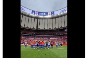 赛后马竞官推放出该队在这场比赛后庆祝胜利的视频,配文:激情!