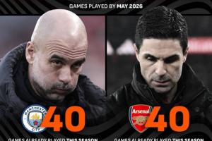 体育资讯02月13日讯 据统计,在本轮英超过后,阿森纳和曼城分别迎来了各自球队本赛季的第40场比赛,如今两队面临着英超、欧冠、联赛杯和足总杯四线作战。