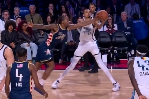 下一篇: 拼尽全力!文班亚马篮下高高跃起,全力封堵对手三分出手。