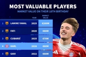 球员18岁生日当天德转身价排名: