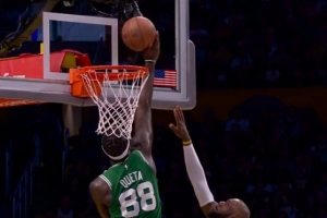 不高兴了!科塔伸到篮网盖帽&雷迪克不满抱怨吃T 湖人本场第三人