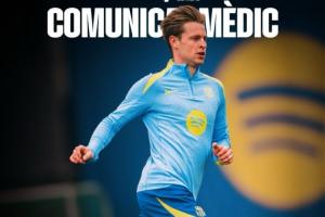 巴萨官方:一线队球员弗伦基·德容在今日上午的训练中,右大腿远端肱二头肌受伤。检查结果确认,其康复周期预计为5至6周。