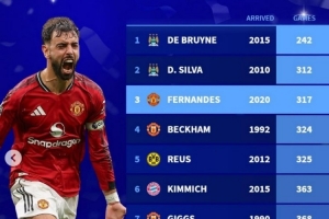 全文摘要:曼联B费317场达成100次助攻,位列五大联赛单一球队中场历史第三,仅次于德布劳内(242场)和大卫·席尔瓦(312场)。贝克汉姆、罗伊斯等名宿紧随其后。