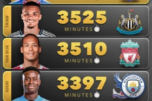 2、佳夫(纽卡):3525分钟