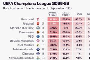 体育资讯09月30日讯 欧冠联赛阶段第二轮开赛在即,opta超级计算机更新了欧冠夺冠概率,其中利物浦位列榜首,阿森纳、曼城分列二三。