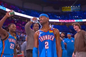 GIF-雷霆众将赛后给亚历山大泼水