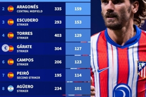 体育资讯10月1日讯 在本轮欧冠马竞5-1击败法兰克福的比赛中,格列兹曼打进个人马竞生涯第200球。德转也盘点了马竞队史射手榜,其中格列兹曼居首,具体如下: