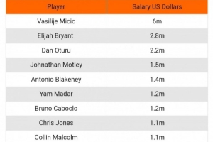 体育资讯10月1日讯 有媒体晒出了以色列特拉维夫夏普尔篮球队的新赛季工资表,球队20人,总薪资达到了2300万美元,按照此前报道米稀奇税后年薪为600万美元来看,这份工资表也都是税后工资。