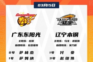 体育资讯3月15日讯 今天晚上7点35分,广东男篮将在主场迎战辽宁男篮。