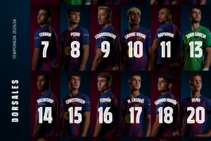 全文摘要:巴萨官方公布一线队新赛季球员号码。门将特尔施特根穿1号,队长阿劳霍4号。莱万身披9号,亚马尔获 coveted 10号。新援拉什福德穿14号,库巴西将5号收入囊中,德容则身披21号。
