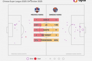 青岛海牛本场比赛的控球率为69%,刷新球队自2012年以来单场中超新高。