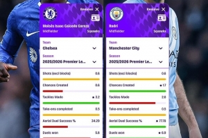 罗德里(曼城):射门0.6次、创造机会1.7次、抢断2.6次,成功过人0.5次、地面对抗成功率77.78%、成功对抗6.9次,空中对抗成功率63.21%,拦截1次、夺回球权6.6次