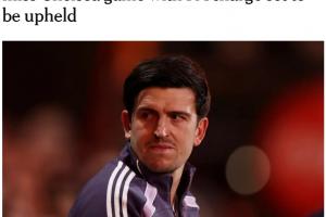 此前英足总官方宣布,在3月20日曼联对阵伯恩茅斯的比赛中,马奎尔因辱骂第四官员行为而遭到指控。