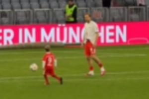 人生的幸福时刻🥹拜仁提前四轮锁定德甲冠军后,凯恩和儿子一起在球场踢球🥰