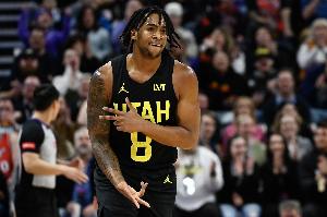 本场比赛,爵士球员森萨博表现出色,尤其是外线十分神准,在26分钟的时间里,投篮15中9,三分球10中6,拿到24分3篮板1助攻1抢断1盖帽的数据。