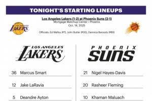 体育资讯10月15日讯 今日10点NBA季前赛,湖人将在客场挑战太阳。