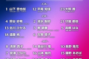 中场:8-清家贵子(布莱顿女足)、14-长谷川唯(曼城女足)、10-长野风花(利物浦女足)、7-宫泽日向(曼联女足)、16-山本柚月(日视美人)、15-藤野青叶(曼城女足)、17-滨野舞香(切尔西女足)、20-松窪真心(北卡罗莱纳勇气)、22-小山史乃观(北卡罗莱纳勇气)、19-谷川萌萌子(拜仁女足)