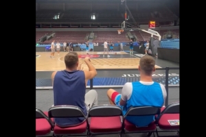 体育资讯9月10日讯 斯洛文尼亚男篮将在明天凌晨2点对阵德国男篮,斯洛文尼亚男篮官方社媒晒出了一个东契奇坐在替补席命中超远三分的视频,这手感真是无敌。