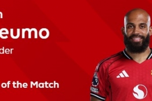 此役姆伯莫双响建功!赛后球员当选全场最佳球员。