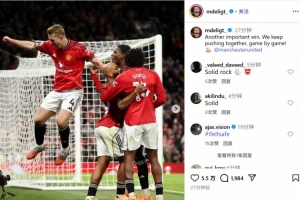 他也在赛后通过社媒晒出自己和队友们的庆祝照,并配文:“又一场重要胜利!我们继续齐心协力,一场一场来!”