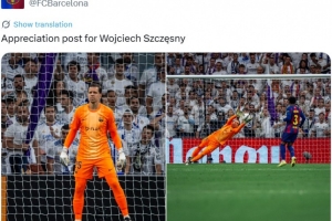 本场比赛什琴斯尼扑出姆巴佩点球,巴萨官推也晒出什琴斯尼扑点瞬间照片,配文写道:“感谢什琴斯尼的发挥。”