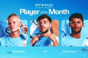 体育资讯10月31日讯 曼城官方公布10月最佳球员候选名单,哈兰德、尼科-冈萨雷斯以及努内斯入围。