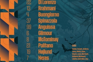 32-米林科维奇-萨维奇、22-迪洛伦佐、13-拉赫马尼、4-布翁乔尔诺、37-斯皮纳佐拉、99-安古伊萨、6-吉尔莫、8-麦克托米奈、21-波利塔诺、19-霍伊伦、7-内雷斯