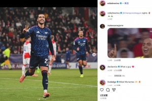 体育资讯11月5日讯 阿森纳在本轮欧冠客场3-0完胜布拉格斯拉维亚,梅里诺客串中锋梅开二度。