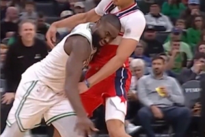 体育资讯11月7日讯 此前杰伦·布朗多次在比赛中将发际线粉蹭到对手球衣上。