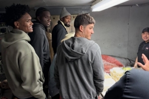 有网友拍到杜兰特和阿门、谢泼德以及卡佩拉比赛间隙在圣安东尼奥一起出门闲逛。