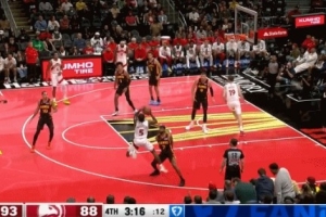 GIF-奎克利挂着亚历山大·沃克手臂扔进三分,可惜不算,给提前犯规