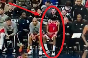 GIF-哈登被换下一屁股瘫坐在板凳