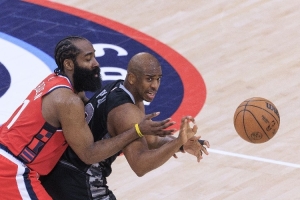 查尔莫斯表示:“是的,他需要打替补,他为什么不这么做呢?他不想要赢一个戒指吗?那需要有很大的牺牲,你不能同时首发保罗、哈登、比尔、科怀。”