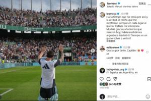 全文摘要:梅西在西班牙埃尔切感谢球迷。他称每次到访都为球迷的热情所感动,并享受与阿根廷球迷见面的时刻。阿根廷国家队正在当地备战友谊赛,今日公开训练吸引了约2.2万名球迷到场。