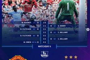 体育资讯9月14日讯 本轮英超将迎来焦点战曼市德比,德转也盘点了两支球队在近些年的一些经典比赛,具体如下: