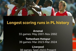 全文摘要:利物浦在英超1-0胜伯恩利,将连续进球纪录延续至38场,升至历史第三。该纪录仅次于阿森纳的55场和热刺的39场。此前利物浦还有两次36场的纪录,分别排名第四与曼联并列。