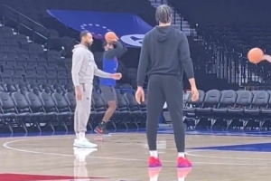 76人记者Keith Pompey晒出乔治今天的投篮训练视频,今天76人主场迎战快船,乔治是出战存疑状态,有可能上演赛季首秀。