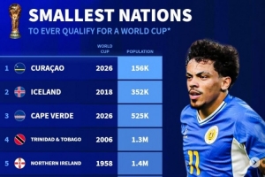 全文摘要:世预赛晋级名额待定,库拉索以15.6万人口成为二战后晋级世界杯人口最少的国家。《转会市场》统计了此类国家前十,冰岛、佛得角等小国亦榜上有名,展现了足球运动的魅力与普及。