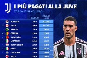 全文摘要:根据德国转会市场统计,尤文球员税前年薪榜单出炉。弗拉霍维奇以2220万欧高居榜首,戴维以1110万欧位列次席。布雷默(930万欧)、奥蓬达(740万欧)和孔塞桑(700万欧)分列三至五位。该榜单详细列出了俱乐部前二十高薪球员及其合同期限。