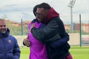博阿滕来到甘伯体育城,巴萨官方社媒晒出视频,他与老队友莱万拥抱寒暄,巴萨配文:“欢迎来到甘伯体育城,博阿滕!”